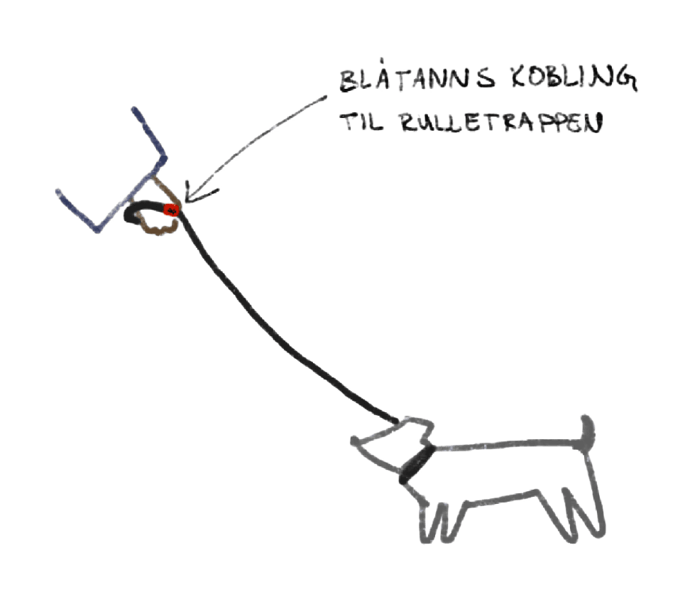 A button that attaches to the dog's leash, featuring a simple on/off interaction. Designed for time-critical situations, where today's escalator emergency stop buttons lack accessibility.