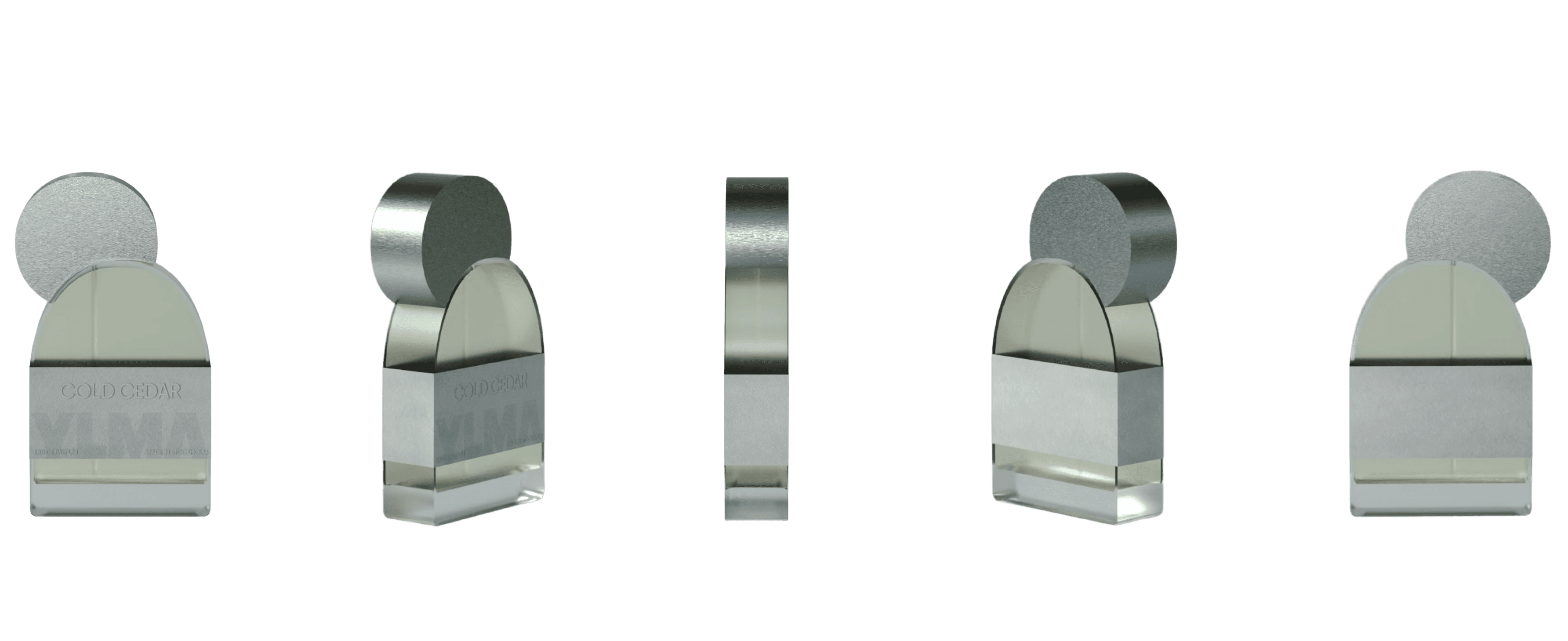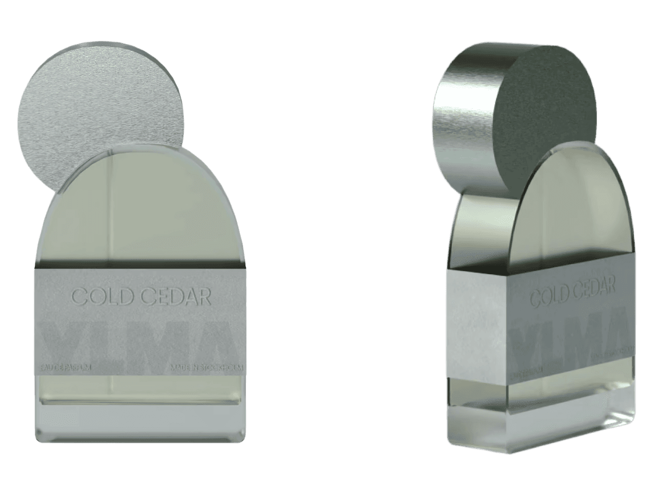 The concept explores contrast: raw nature and refined minimalism. Inspired by Icelandic volcanic landscapes. The bottle combines frosted glass and brushed metal, balancing softness and strength. Chosen to communicate longevity, tactility, and understated luxury.