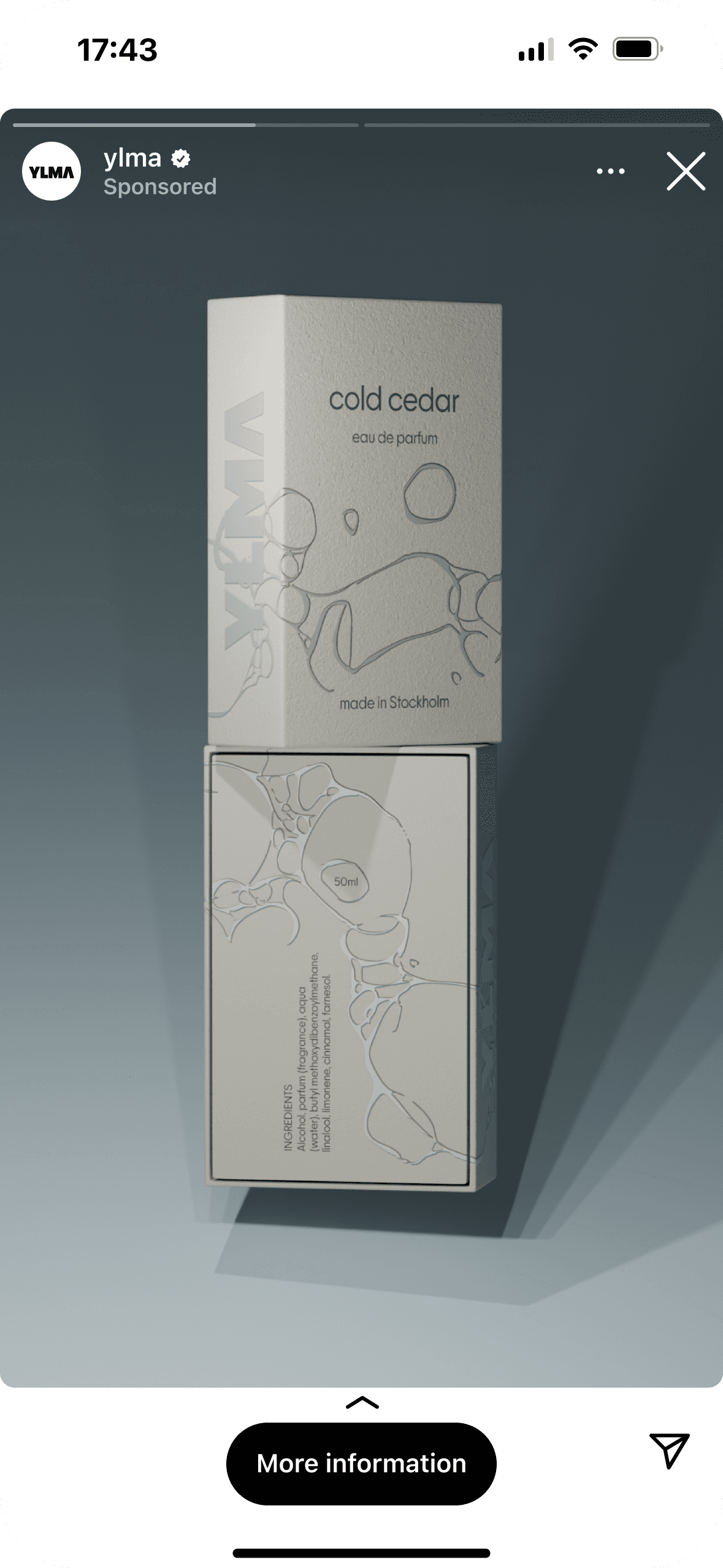 YLMA is a unisex fragrance targeted towards quality-oriented consumers in the Nordic region. The name is inspired by the Icelandic word “ylmur”, meaning scent, grounding the brand in my cultural heritage while positioning it within a Nordic design context.